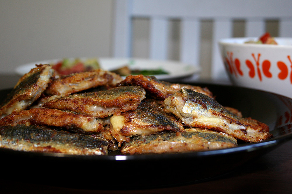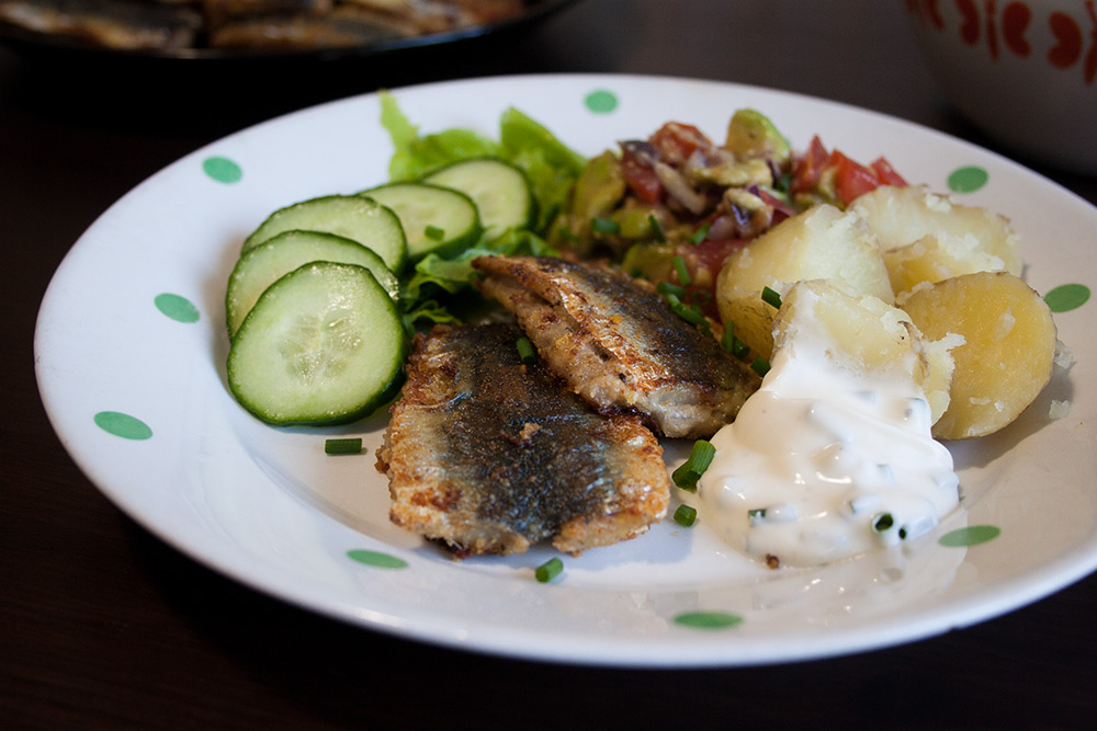 Halusin koittaa paistaa silakkapihvejä. Korkea aikakin kun edellisten paistamisesta taitaa olla hyvät 20 vuotta aikaa. Hiukan vaivasin päätäni pohtimalla mitä laittaisin pihvien täytteeksi ja päädyin mozzarellaan. Se olikin hyvä valinta, koska se ei maistunut voimakkaasti, mutta mehevöitti silakoita mukavasti. Tuore kala ei tosiaan kaipaa maun peittelyä ja veikkaanpa, että silakat olisivat olleet herkullisia myös ilman tuota juustoa. Mutta vielä herkullisempia varmasti näin, voi pojat! Piti jäädä vielä huomiselle, mutta arvaahan tuon… ruokailun jälkeen ei ollut paljon mitään jäljellä.
